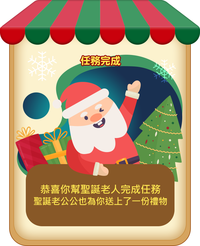 迷糊的聖誕老公公把禮物弄丟了,請幫他收集禮物,讓小朋友可以如期在聖誕節收到禮物吧!